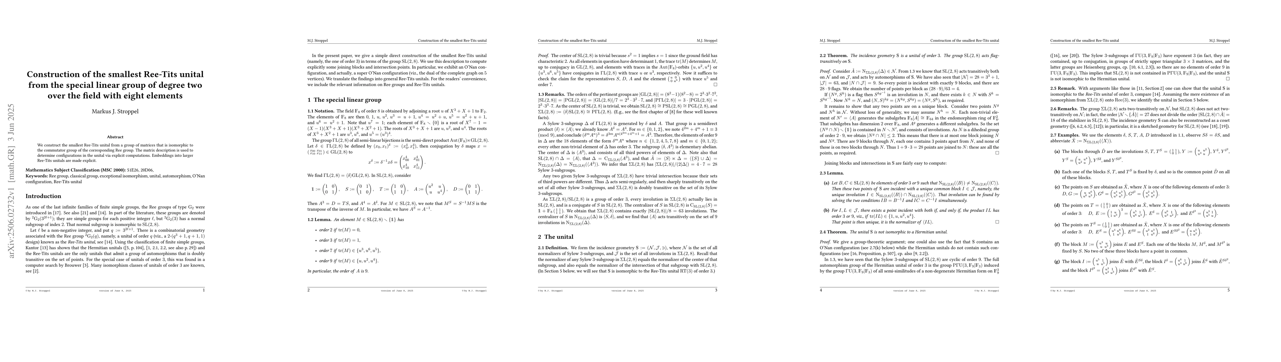 Researchers constructed the smallest Ree-Tits unital from a matrix group isomorphic to the commutator group of the corresponding Ree group, enabling explicit embeddings into larger unitals.