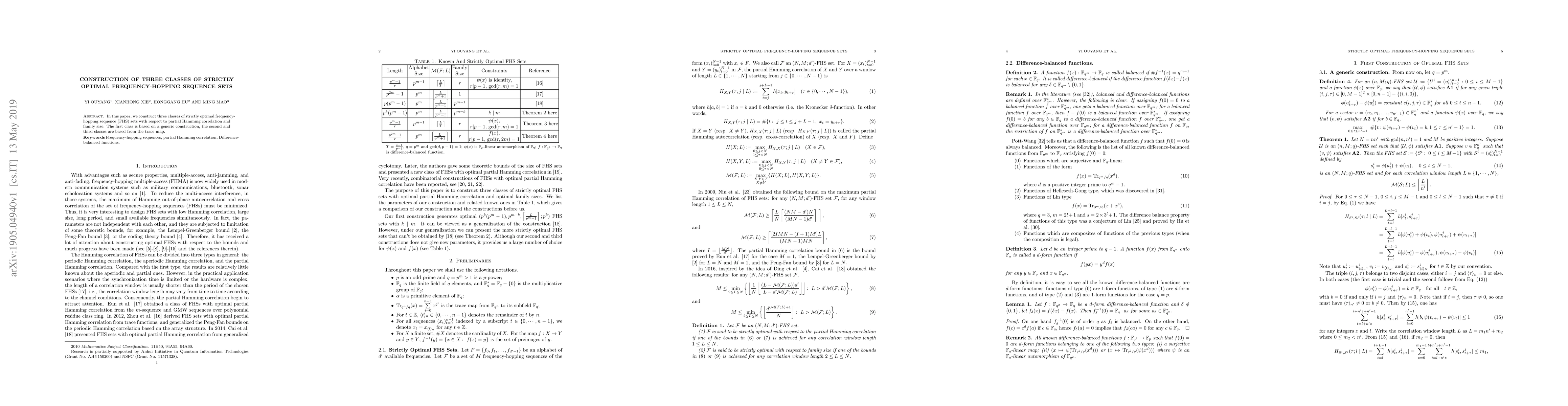 This paper constructs three classes of strictly optimal frequency-hopping sequence sets concerning partial Hamming correlation and family size, with the first class using a generic method and the second and third classes derived from the trace map.