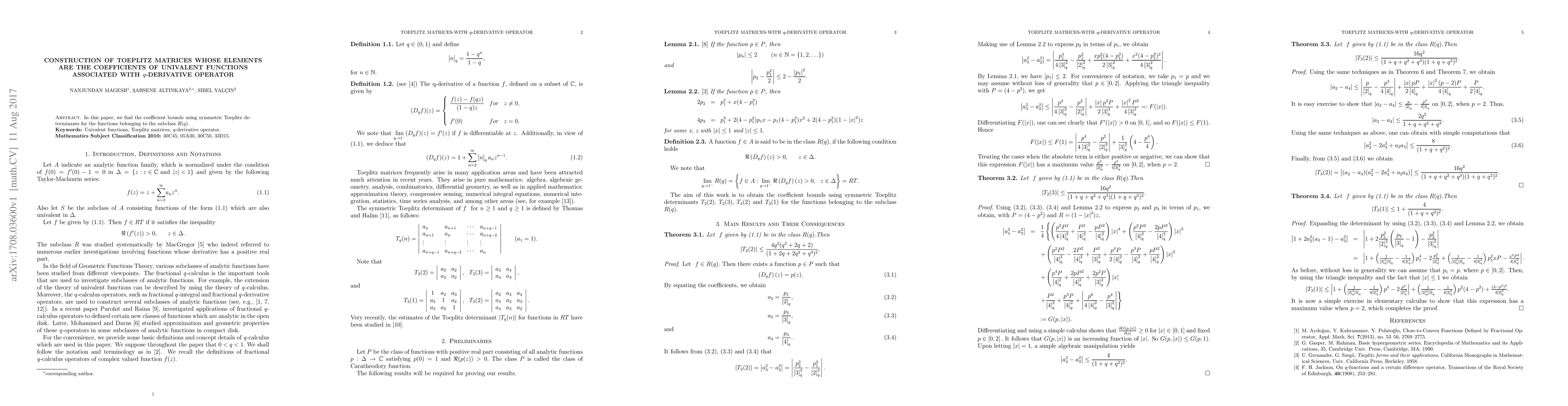 Summary: This paper constructs Toeplitz matrices based on the coefficients of univalent functions linked to a $q$-derivative operator and determines coefficient bounds using symmetric Toeplitz determinants for functions in the subclass $R(q)$.