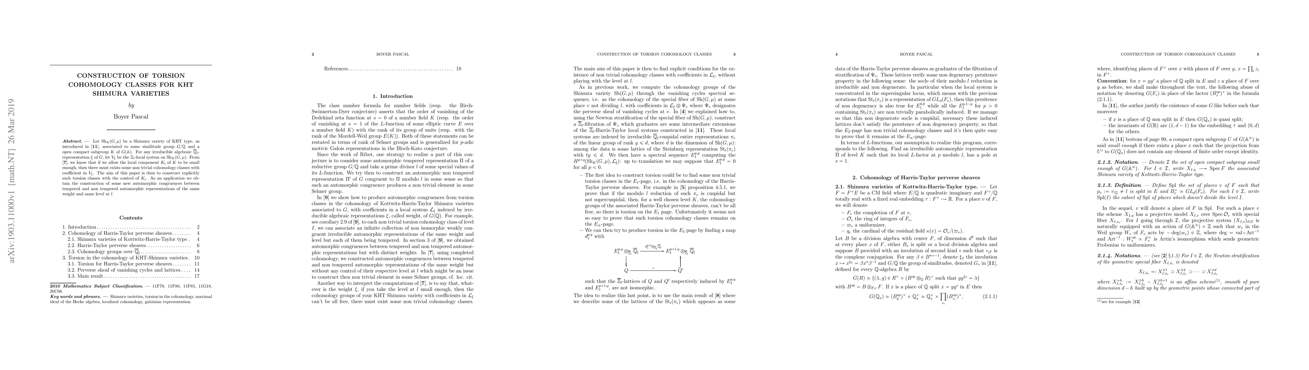 This paper constructs explicit torsion cohomology classes for KHT Shimura varieties associated with similitude groups, using a $\mathbb Z_l$-local system $V_\xi$. It controls the local component of the open compact subgroup $K$ to achieve these constructions, leading to new automorphic congruences between tempered and non-tempered automorphic representations.