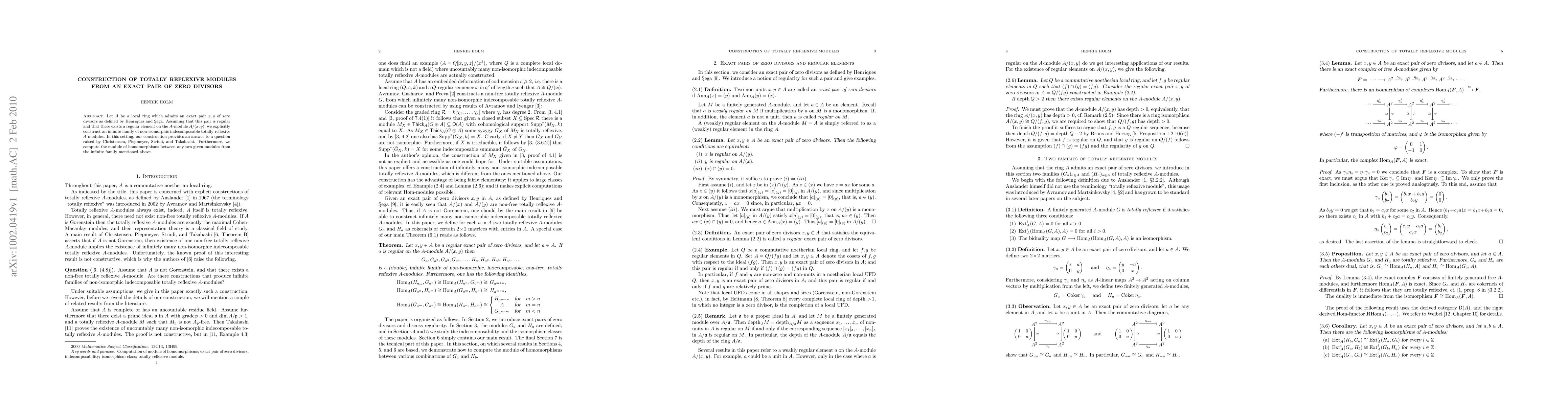 This paper constructs an infinite family of non-isomorphic totally reflexive A-modules from a local ring with exact pair zero divisors, answering a question raised by Christensen et al., and computes the module of homomorphisms between any two modules in the family.