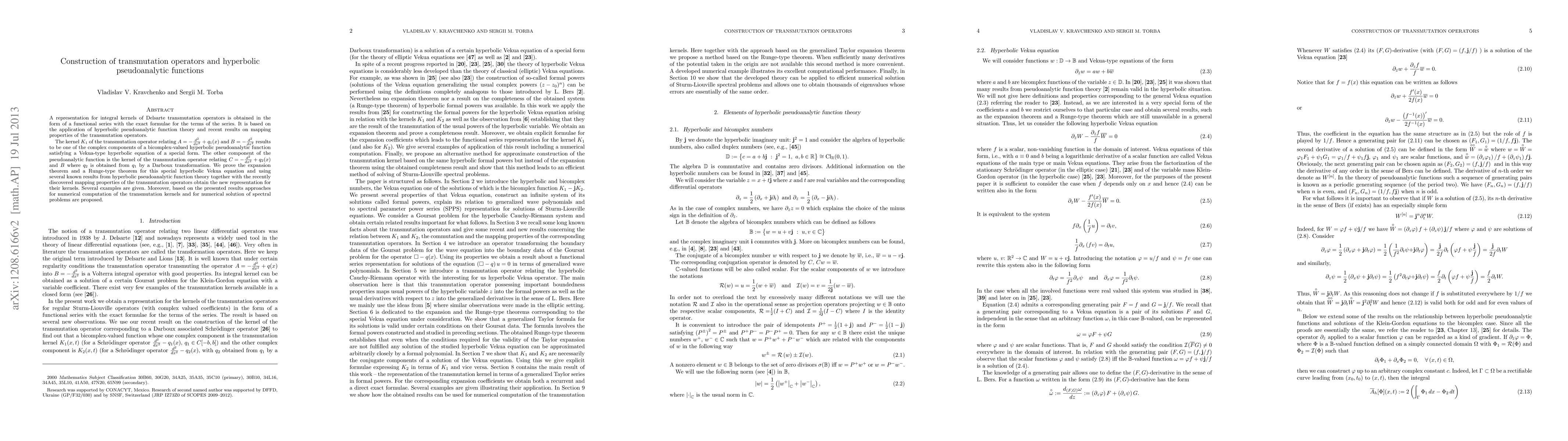 This paper constructs integral kernels for Delsarte transmutation operators using hyperbolic pseudoanalytic function theory, revealing the kernels as complex components of bicomplex-valued functions. It also proposes numerical methods for computing these kernels and solving spectral problems.