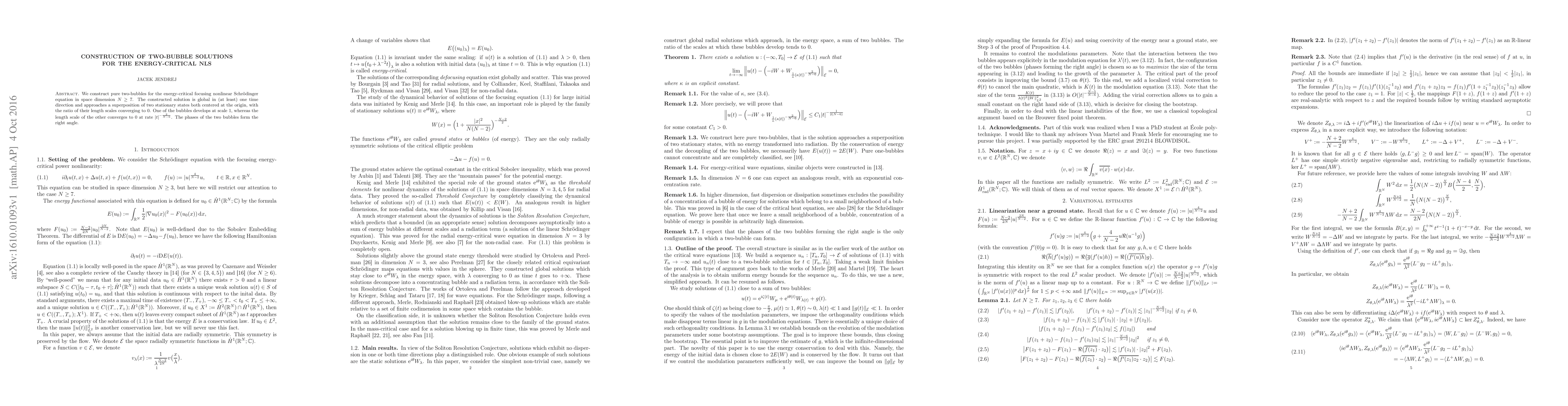 We construct pure two-bubbles for the energy-critical focusing nonlinear Schr\"odinger equation in space dimension $N \geq 7$. The constructed solution is global in (at least) one time direction and approaches a superposition of two stationary states both centered at the origin, with the ratio of their length scales converging to $0$. One of the bubbles develops at scale $1$, whereas the length scale of the other converges to $0$ at rate $|t|^{-\frac{2}{N-6}}$. The phases of the two bubbles form the right angle.