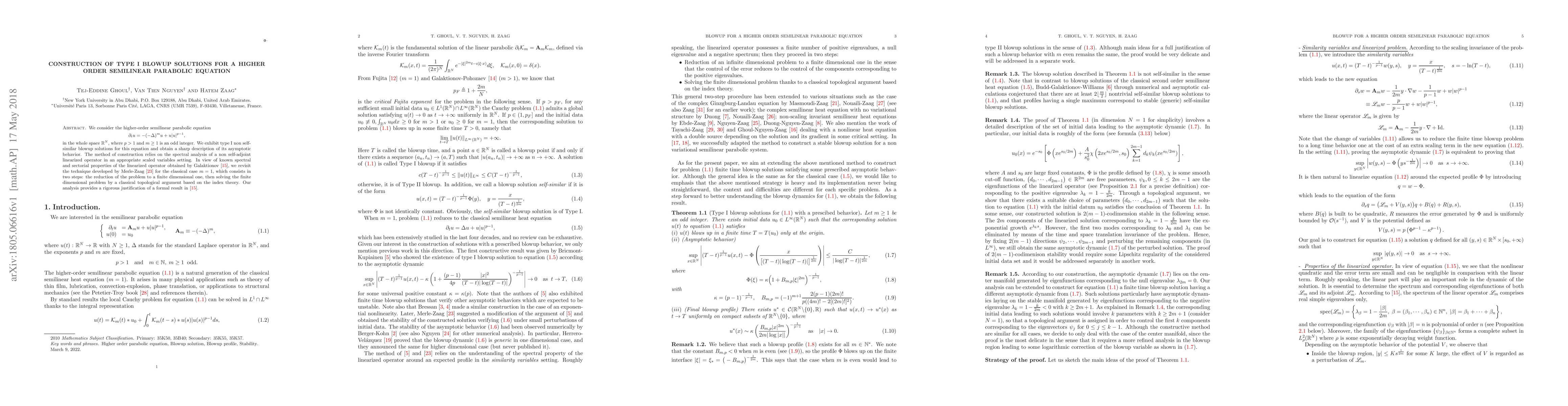 This research constructs type I blowup solutions for a higher order semilinear parabolic equation, detailing their asymptotic behavior using spectral analysis of a non-selfadjoint linearized operator. The methodology builds upon previous work for m=1, providing a rigorous justification for a previously informal result.