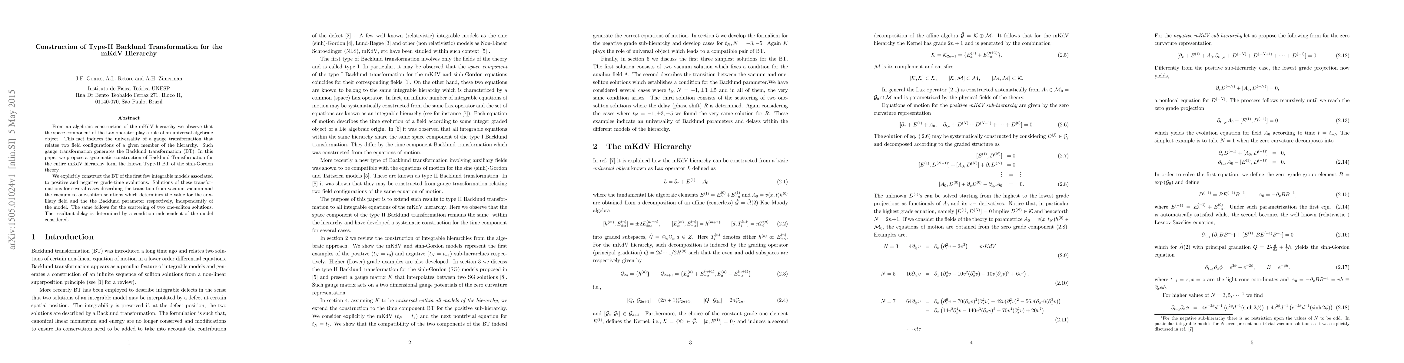 This paper constructs a systematic Type-II Backlund Transformation (BT) for the entire mKdV hierarchy, derived from the Type-II BT of the sinh-Gordon theory. It provides explicit constructions for integrable models and analyzes transitions between vacuum and soliton solutions, determining model-independent values for auxiliary fields and BT parameters.