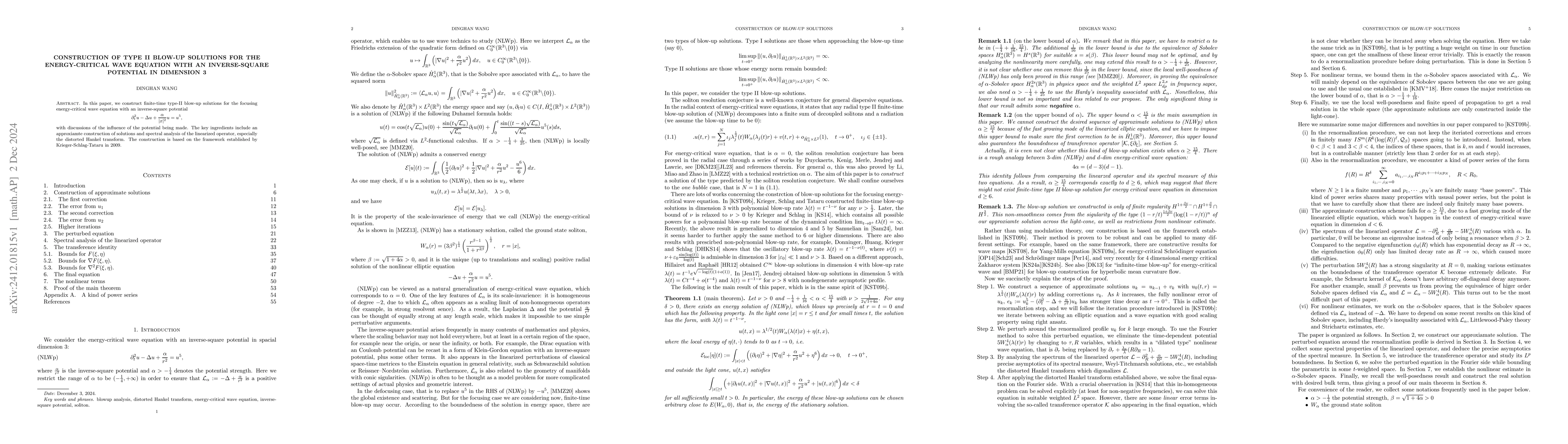 This paper constructs finite-time type-II blow-up solutions for the energy-critical wave equation with an inverse-square potential in 3 dimensions, utilizing approximate solution construction and spectral analysis via the distorted Hankel transform. The framework follows the 2009 methodology by Krieger-Schlag-Tataru.