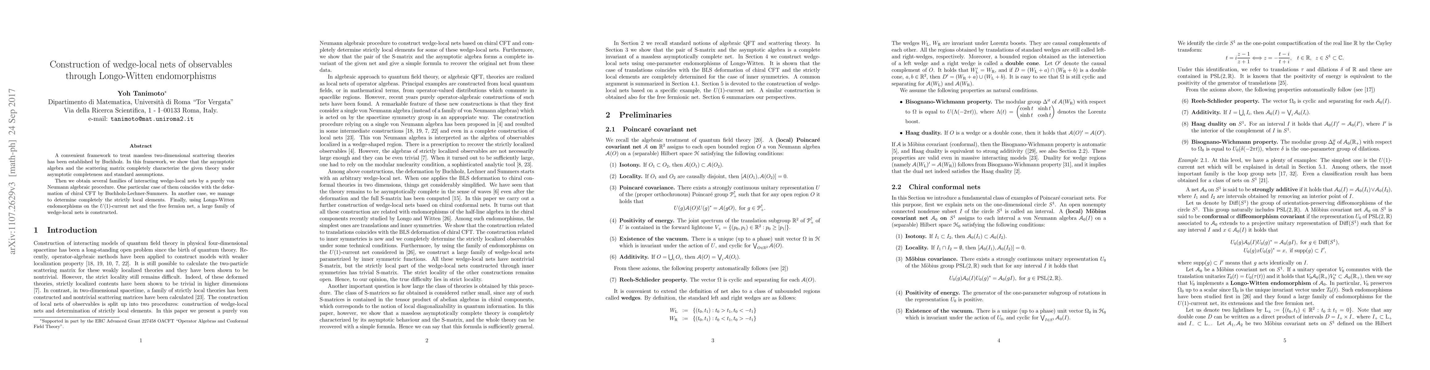 This paper constructs wedge-local nets of observables for massless two-dimensional scattering theories using a framework established by Buchholz. It shows that the asymptotic algebra and scattering matrix characterize the theory under standard assumptions, and it employs Longo-Witten endomorphisms to build a large family of wedge-local nets, including deformations of chiral CFT.