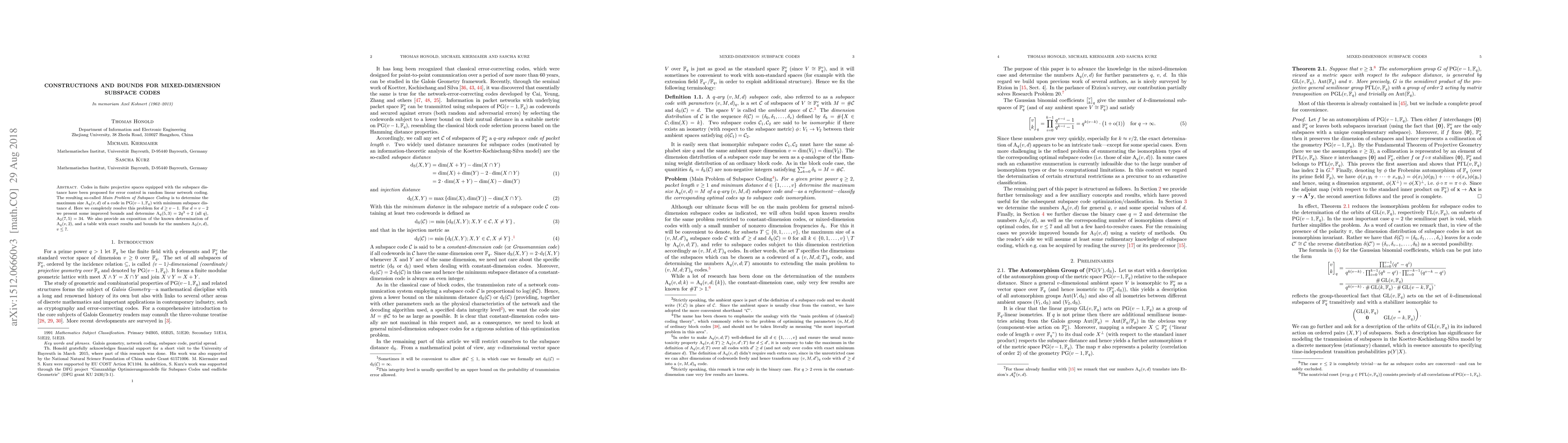 This paper resolves the maximum size of mixed-dimension subspace codes in finite projective spaces for minimum subspace distance $d \geq v-1$ and presents improved bounds for $d=v-2$. It determines specific values for $A_q(5,3)$ and $A_2(7,5)$ and provides a comprehensive table of exact results and bounds for $A_2(v,d)$ where $v \leq 7$.