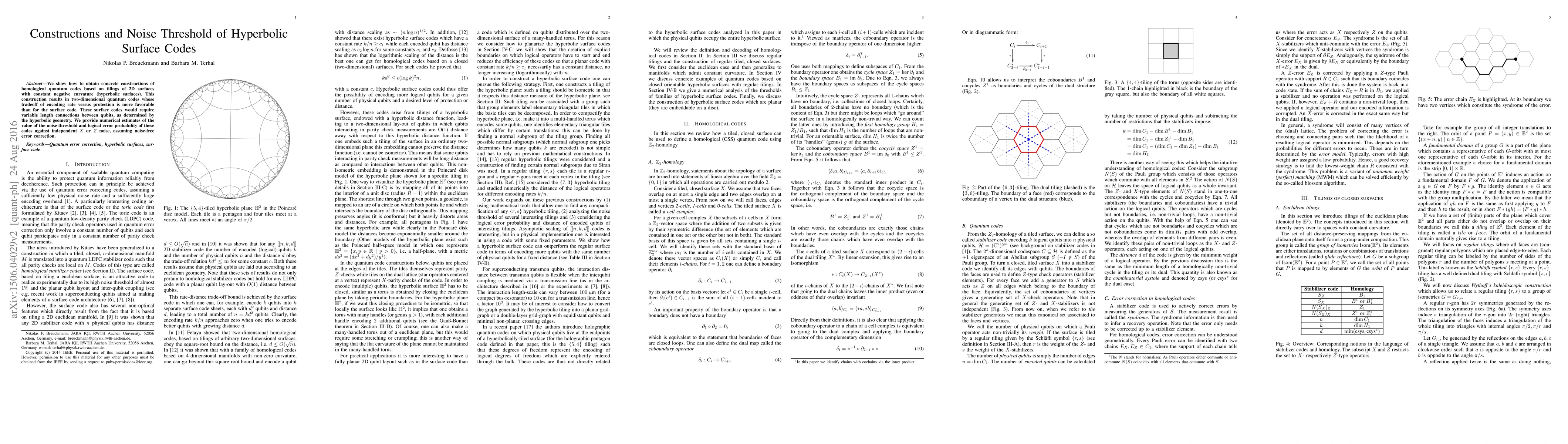 Researchers developed a new method for creating two-dimensional quantum codes based on hyperbolic surfaces, which offer improved trade-offs between encoding rate and protection against noise. These surface codes have favorable properties but require variable-length connections between qubits.