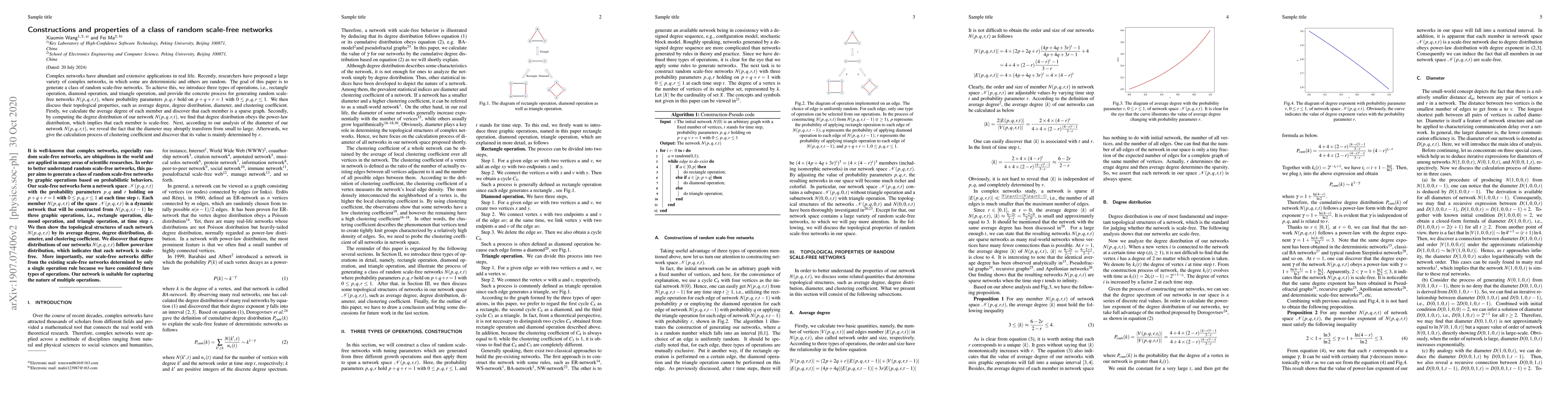 Complex networks have abundant and extensive applications in real life. Recently, researchers have proposed a number of complex networks, in which some are deterministic and others are random. Compared with deterministic networks, random network is not only interesting and typical but also practical to illustrate and study many real-world complex networks, especially for random scale-free networks. Here, we introduce three types of operations, i.e., type-A operation, type-B operation and type-C operation, for generating random scale-free networks $N(p,q,r,t)$. On the basis of our operations, we put forward the concrete process of producing networks, which constitute the network space $\mathcal{N}(p,q,r,t)$, and then discuss their topological properties. Firstly, we calculate the range of the average degree of each member in our network space and discover that each member is a sparse network. Secondly, we prove that each member in our space obeys the power-law distribution with degree exponent $\gamma=1+\frac{\ln(4-r)}{\ln2}$, which implies that each member is scale-free. Next, we analyze the diameter, and find that the diameter may abruptly transform from small to large due to type-B operation. Afterwards, we study the clustering coefficient of network and discover that its value is only determined by type-C operation. Ultimately, we make an elaborate conclusion. \\ \textbf{Keywords:} Random network; degree distribution; diameter; clustering coefficient.