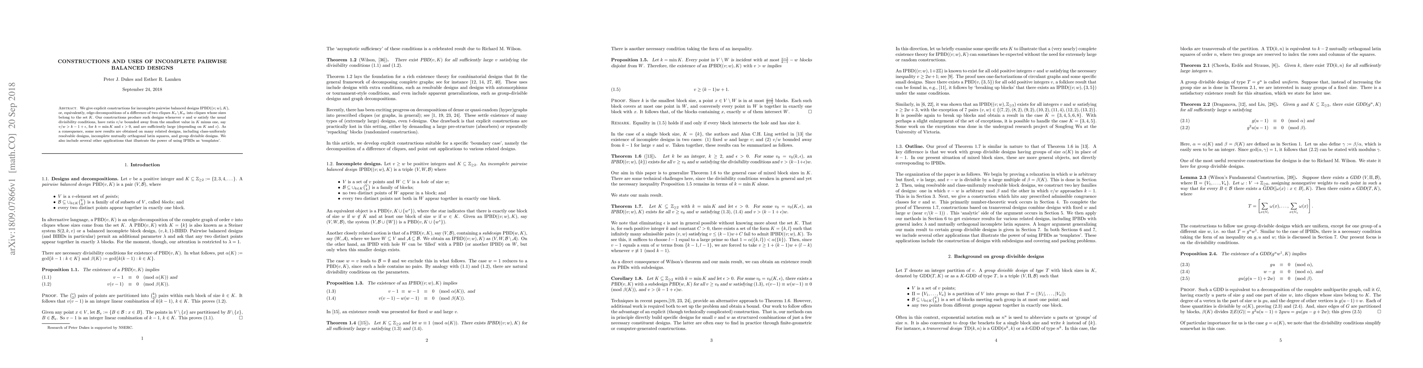 This paper presents constructions for incomplete pairwise balanced designs (IPBD) that decompose the difference of two cliques into smaller cliques, satisfying specific divisibility and size conditions. The findings extend to related designs and applications, showcasing the utility of IPBDs as useful templates.