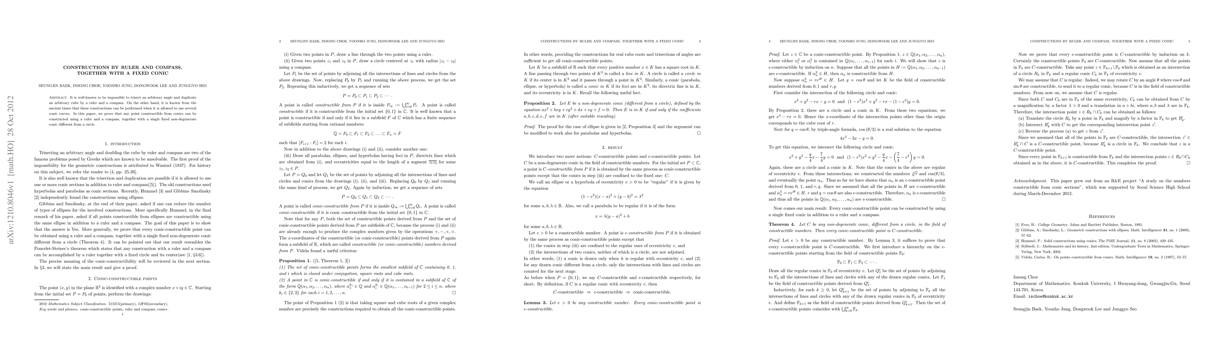 Researchers prove that any point constructible from conics can also be constructed using a ruler and compass with a fixed non-degenerate conic.