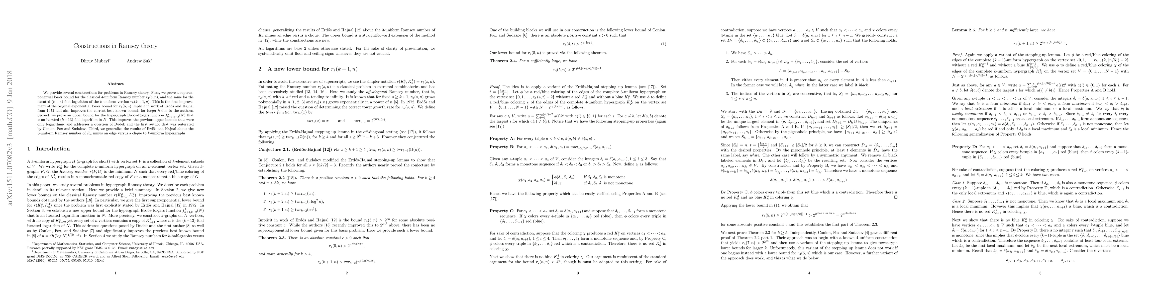 This paper presents advancements in Ramsey theory, including a superexponential lower bound improvement for 4-uniform Ramsey numbers, better upper bounds for the hypergraph ErdH os-Rogers function, and a generalization of ErdH os and Hajnal's results for k-uniform hypergraphs.