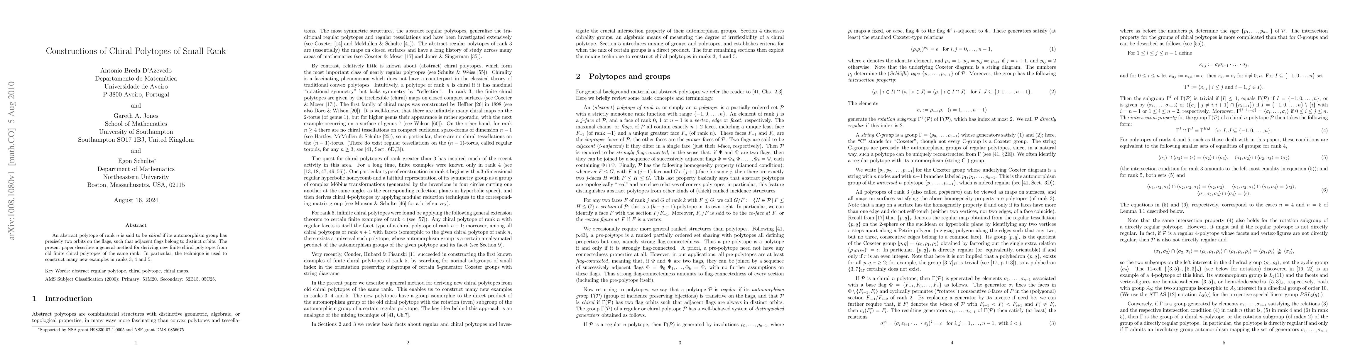 An abstract polytope of rank n is said to be chiral if its automorphism group has precisely two orbits on the flags, such that adjacent flags belong to distinct orbits. The present paper describes a general method for deriving new finite chiral polytopes from old finite chiral polytopes of the same rank. In particular, the technique is used to construct many new examples in ranks 3, 4 and 5.