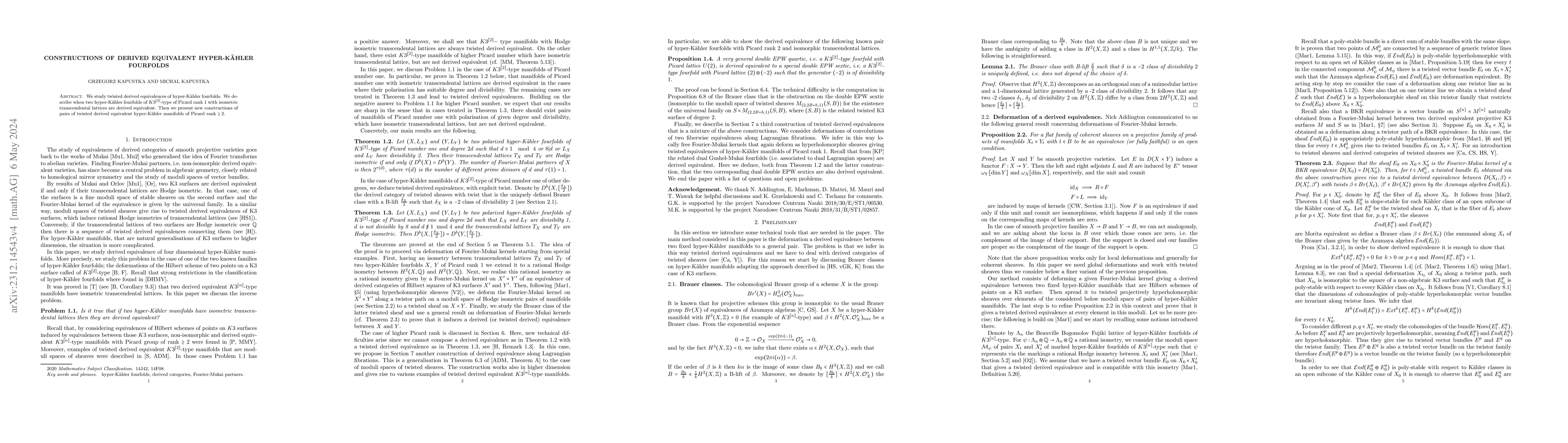 Summary: This paper investigates twisted derived equivalences in hyper-Kähler fourfolds of $K3^{[2]}$-type, revealing conditions for equivalence and presenting novel constructions for pairs of derived equivalent hyper-Kähler manifolds of higher Picard rank.