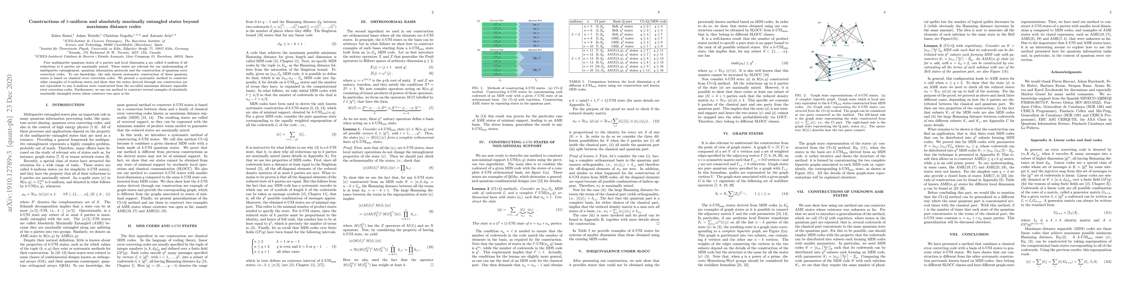 This paper presents a new systematic method for constructing k-uniform quantum states beyond those derived from maximum distance separable codes, expanding the understanding of multipartite entanglement and quantum error correction. It also demonstrates the construction of several previously unknown absolutely maximally entangled states.