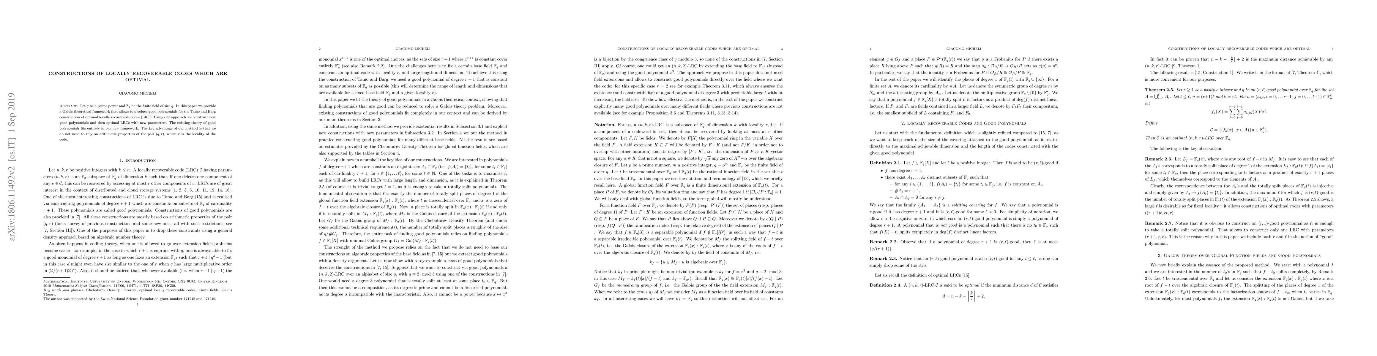 This paper introduces a Galois theoretical framework to construct optimal locally recoverable codes (LRCs), providing new good polynomials and LRCs with unique parameters. The method doesn't depend on the arithmetic properties of (q,r), where q is a prime power and r is the locality of the code.