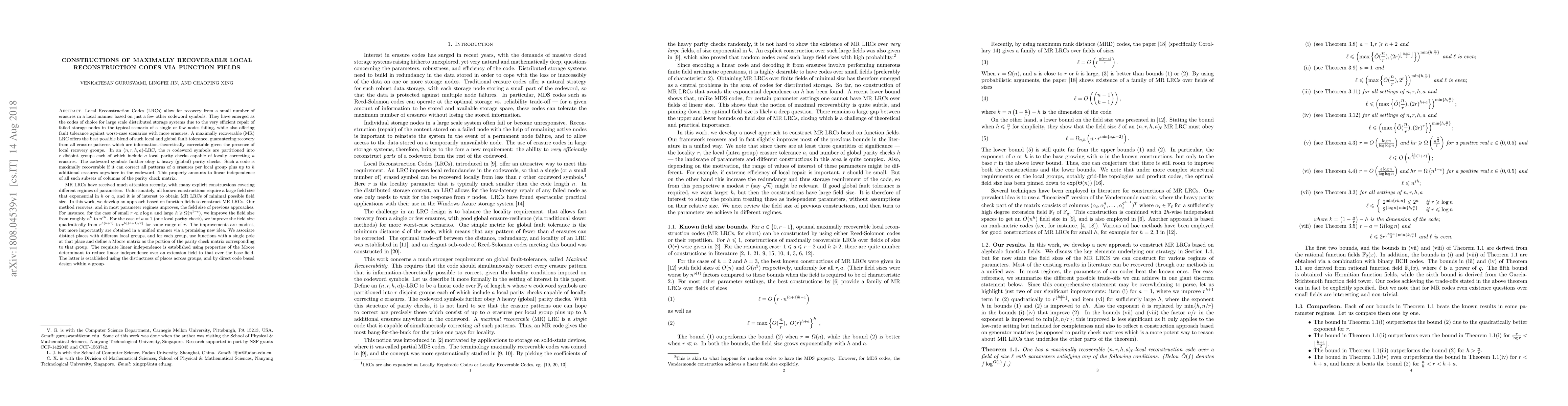 Local Reconstruction Codes (LRCs) allow for recovery from a small number of erasures in a local manner based on just a few other codeword symbols. A maximally recoverable (MR) LRC offers the best possible blend of such local and global fault tolerance, guaranteeing recovery from all erasure patterns which are information-theoretically correctable given the presence of local recovery groups. In an $(n,r,h,a)$-LRC, the $n$ codeword symbols are partitioned into $r$ disjoint groups each of which include $a$ local parity checks capable of locally correcting $a$ erasures. MR LRCs have received much attention recently, with many explicit constructions covering different regimes of parameters. Unfortunately, all known constructions require a large field size that exponential in $h$ or $a$, and it is of interest to obtain MR LRCs of minimal possible field size. In this work, we develop an approach based on function fields to construct MR LRCs. Our method recovers, and in most parameter regimes improves, the field size of previous approaches. For instance, for the case of small $r \ll \epsilon \log n$ and large $h \ge \Omega(n^{1-\epsilon})$, we improve the field size from roughly $n^h$ to $n^{\epsilon h}$. For the case of $a=1$ (one local parity check), we improve the field size quadratically from $r^{h(h+1)}$ to $r^{h \lfloor (h+1)/2 \rfloor}$ for some range of $r$. The improvements are modest, but more importantly are obtained in a unified manner via a promising new idea.