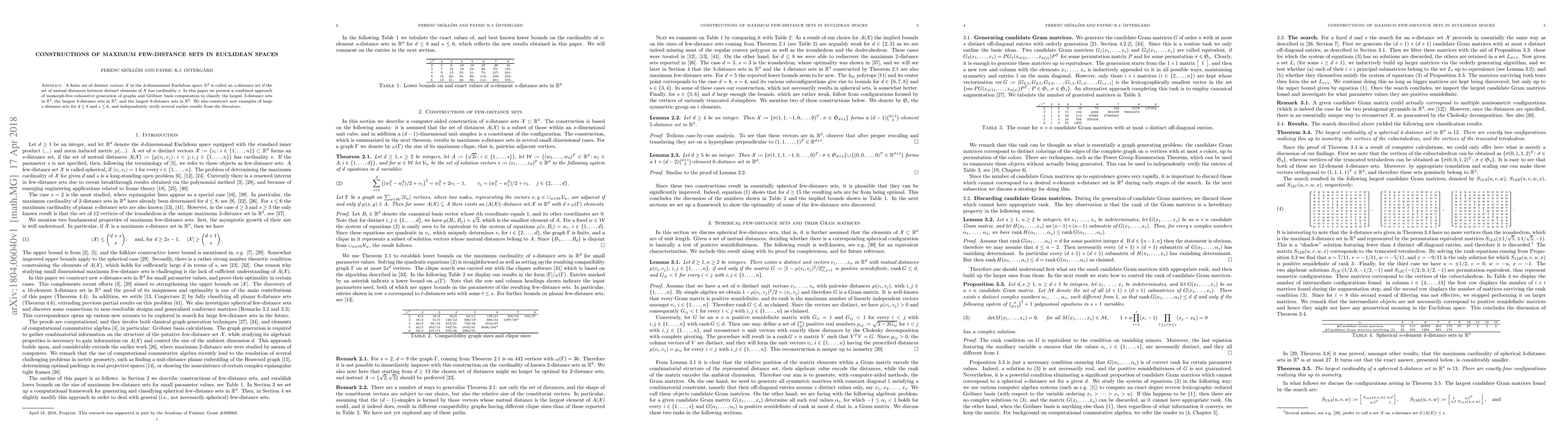 This paper uses a combined approach of graph generation and Gröbner basis computation to classify the largest $3$-distance sets in $\mathbb{R}^4$, $4$-distance sets in $\mathbb{R}^3$, and $6$-distance sets in $\mathbb{R}^2$, and constructs new examples of large $s$-distance sets for $d\leq 8$ and $s\leq 6$.