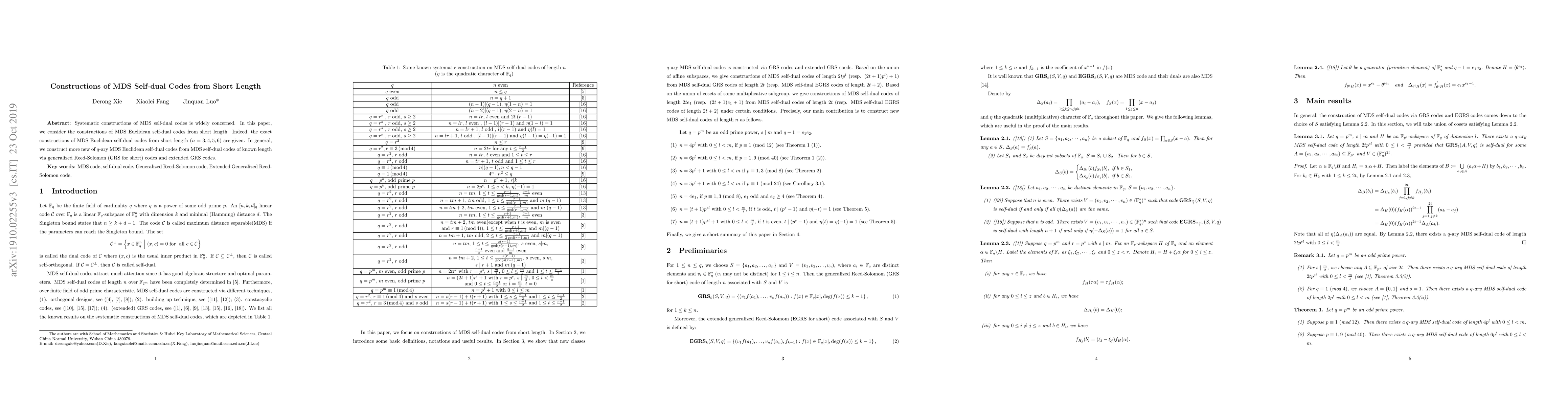 This paper systematically constructs MDS Euclidean self-dual codes for short lengths ($n=3,4,5,6$), and introduces new $q$-ary MDS Euclidean self-dual codes using generalized Reed-Solomon (GRS) and extended GRS codes derived from known lengths.