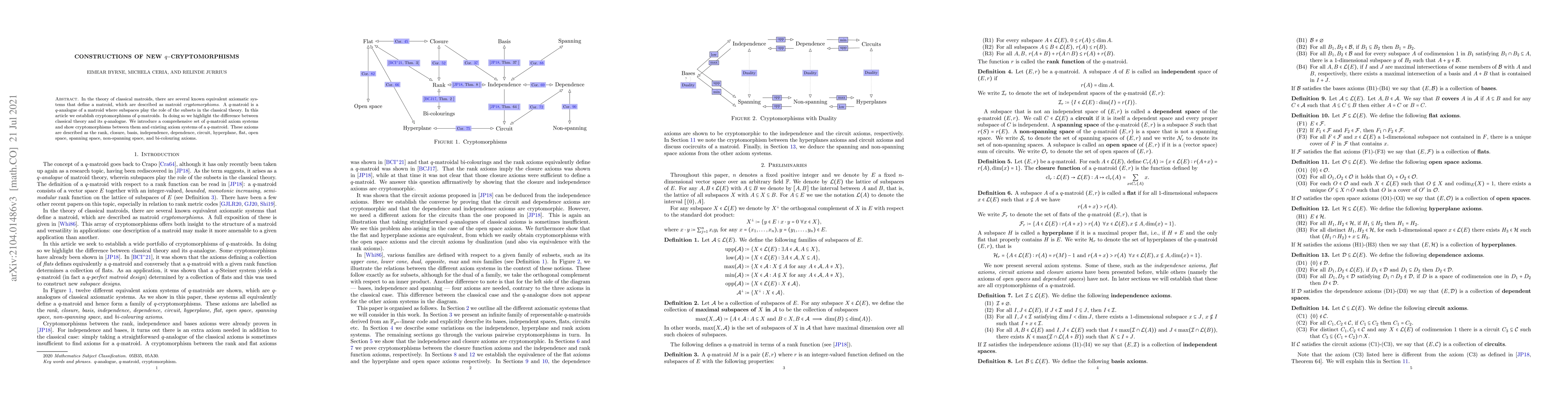This paper constructs new q-cryptomorphisms for q-matroids, presenting a set of axiom systems that define these q-analogues of classical matroids, and demonstrates their equivalences while emphasizing differences from classical matroid theory.