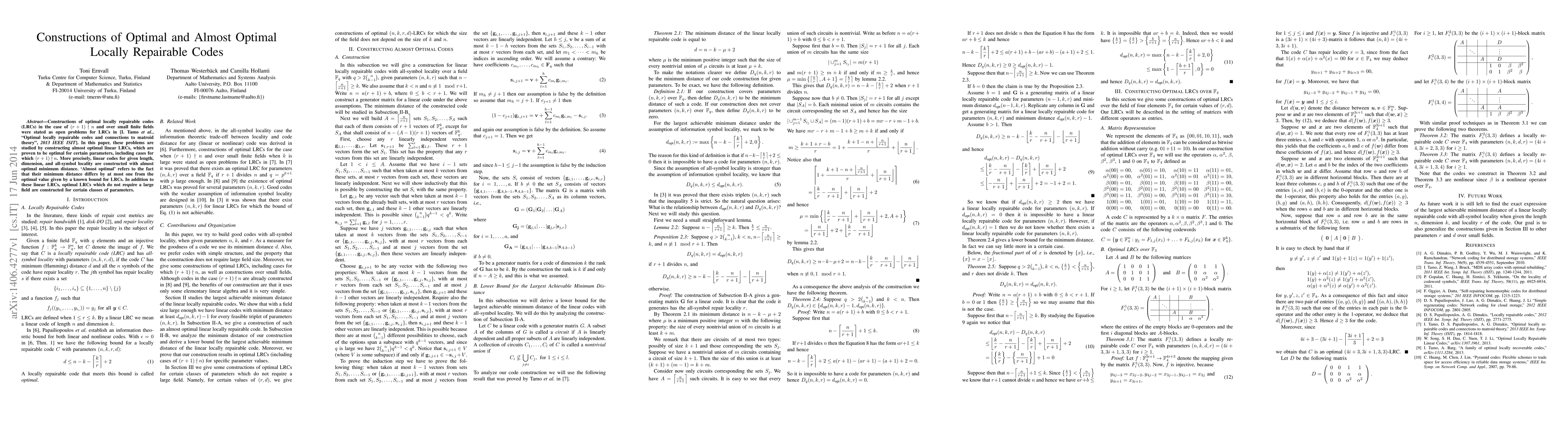 Constructions of optimal locally repairable codes (LRCs) in the case of $(r+1) \nmid n$ and over small finite fields were stated as open problems for LRCs in [I. Tamo \emph{et al.}, "Optimal locally repairable codes and connections to matroid theory", \emph{2013 IEEE ISIT}]. In this paper, these problems are studied by constructing almost optimal linear LRCs, which are proven to be optimal for certain parameters, including cases for which $(r+1) \nmid n$. More precisely, linear codes for given length, dimension, and all-symbol locality are constructed with almost optimal minimum distance. `Almost optimal' refers to the fact that their minimum distance differs by at most one from the optimal value given by a known bound for LRCs. In addition to these linear LRCs, optimal LRCs which do not require a large field are constructed for certain classes of parameters.