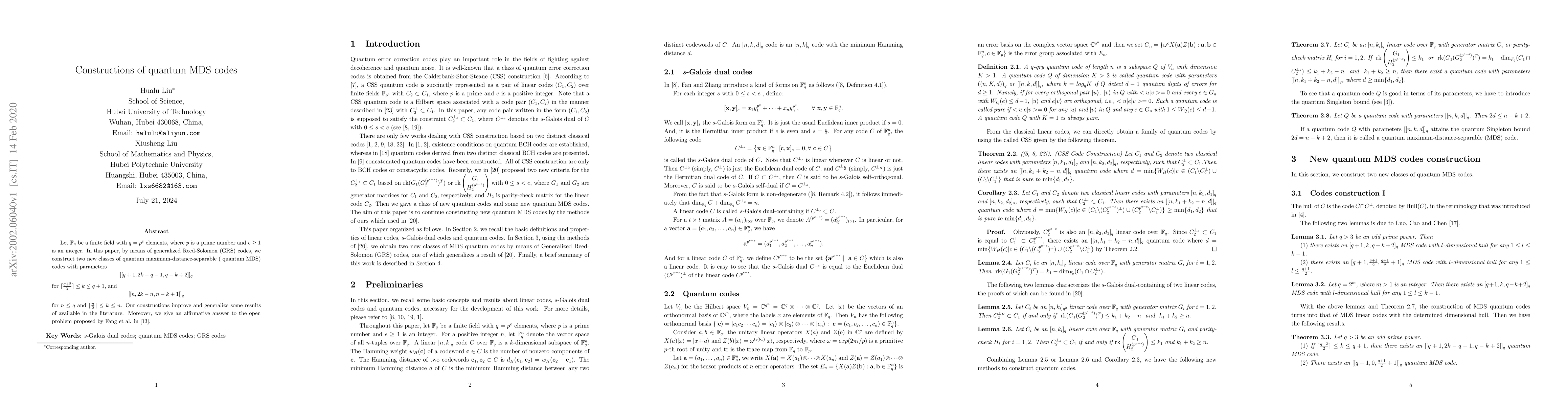 This paper constructs two new classes of quantum maximum-distance-separable (QMDS) codes using generalized Reed-Solomon codes, improving upon existing literature. The new codes have parameters $[[q + 1, 2k-q-1, q-k+2]]_q$ for specific $k$ values and $[[n,2k-n,n-k+1]]_q$ for $n\leq q$, resolving an open problem posed by Fang et al.
