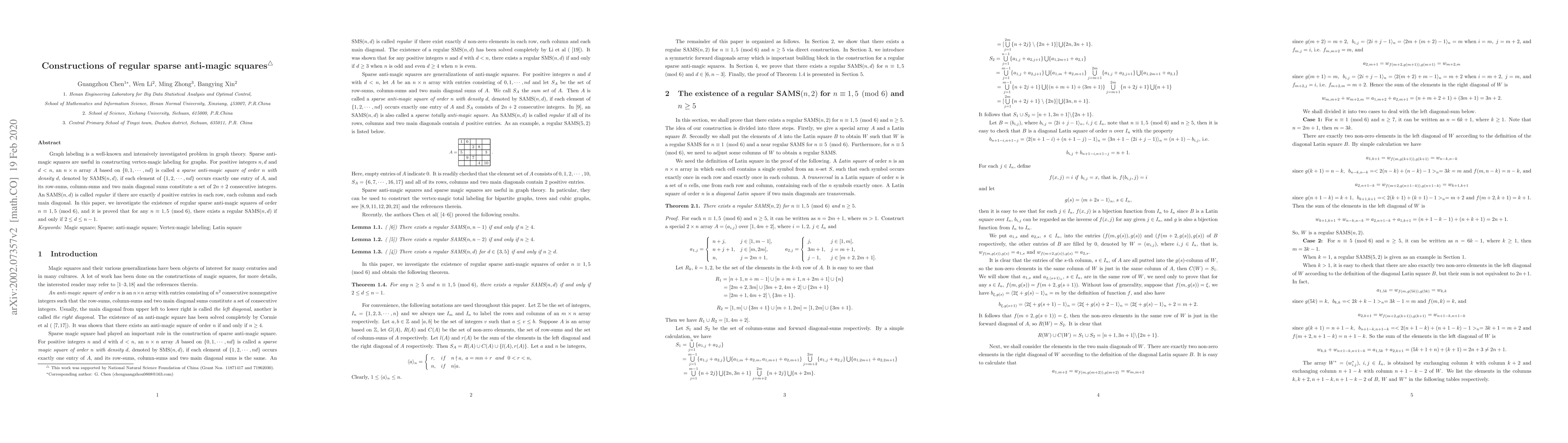 The paper introduces and proves the existence of regular sparse anti-magic squares (SAMS) under specific conditions, along with constructive methods for their creation.
