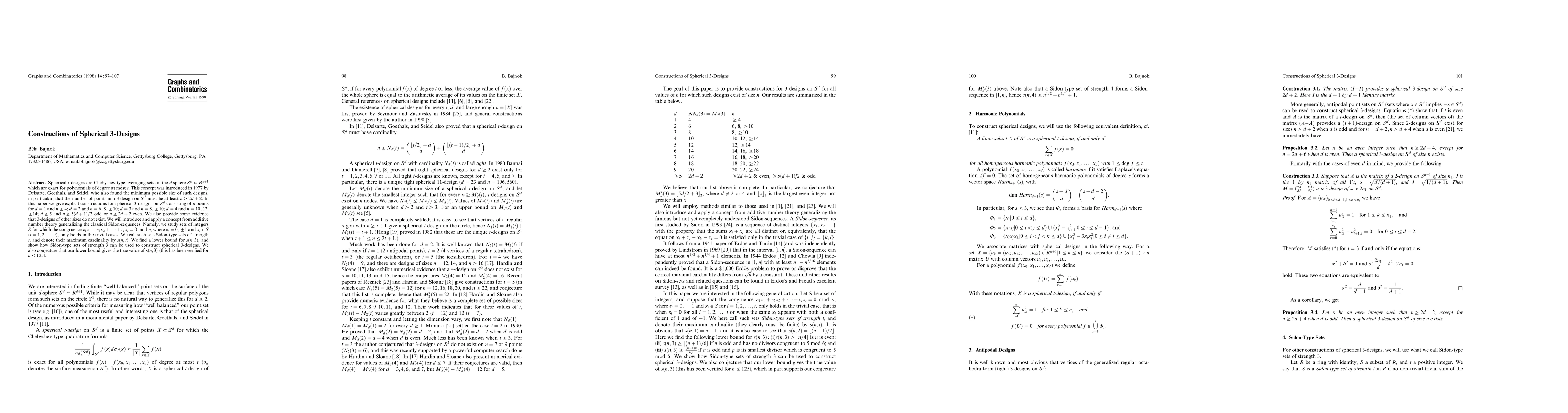 This paper presents explicit constructions for spherical 3-designs on various dimensions, fulfilling the minimum size requirements for d-spheres, and suggests the non-existence of 3-designs for other sizes.