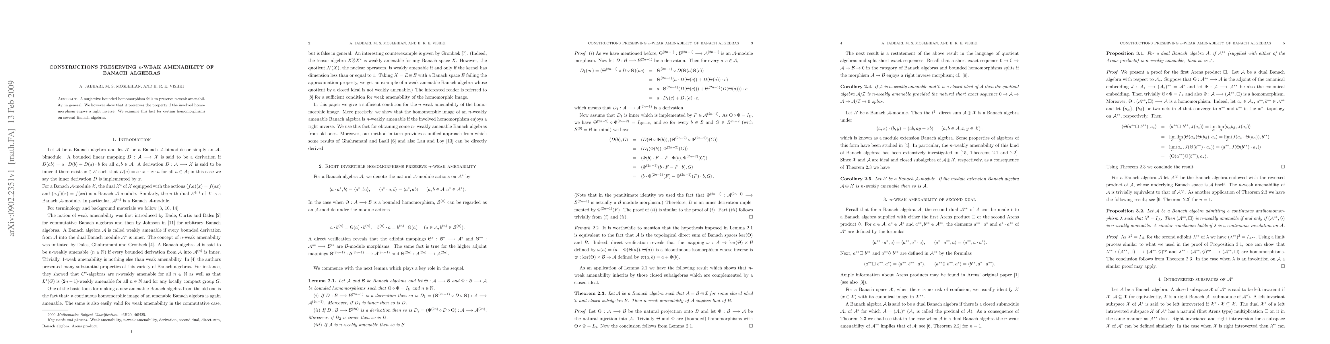 A surjective bounded homomorphism fails to preserve $n$-weak amenability, in general. We however show that it preserves the property if the involved homomorphism enjoys a right inverse. We examine this fact for certain homomorphisms on several Banach algebras.