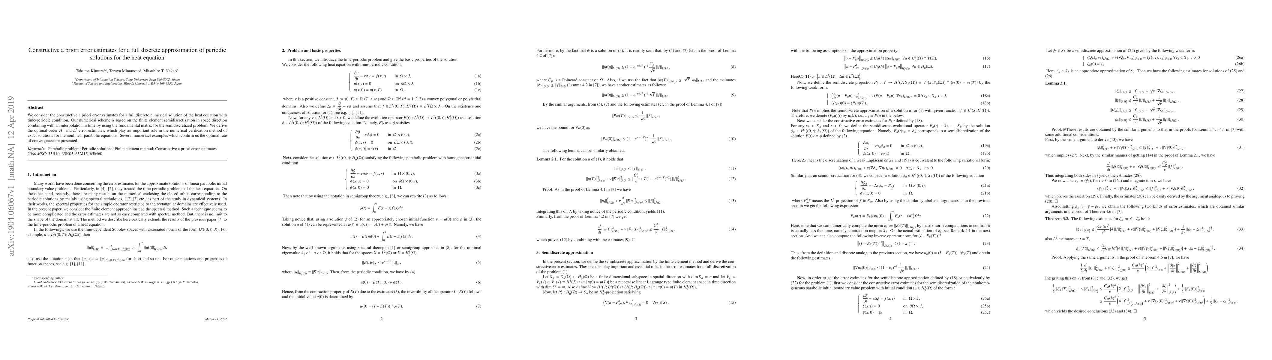 This research provides constructive a priori error estimates for numerically solving the heat equation with periodic time conditions using a fully discrete method.