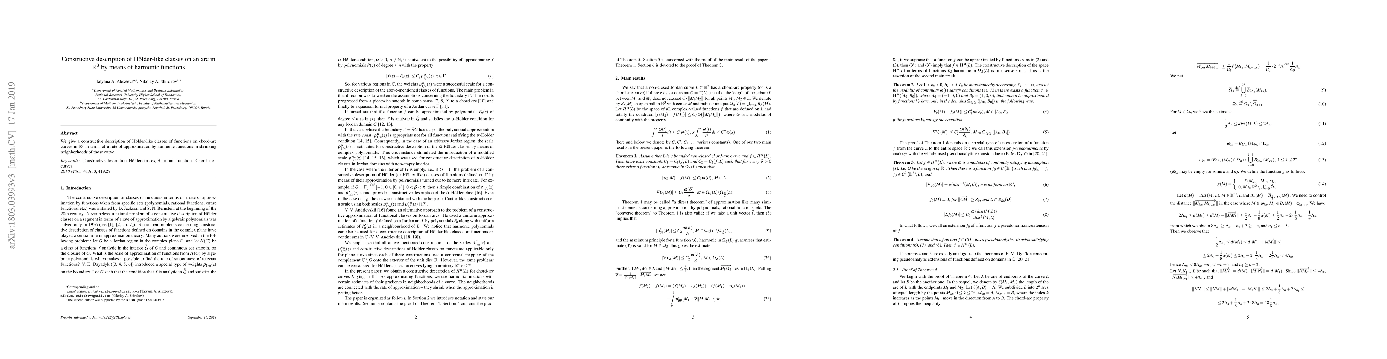 This paper provides a constructive method for defining H\"older-like classes of functions on a chord-arc curve in $\mathbb{R}^3$ using the approximation rate of harmonic functions in shrinking neighborhoods along the curve.