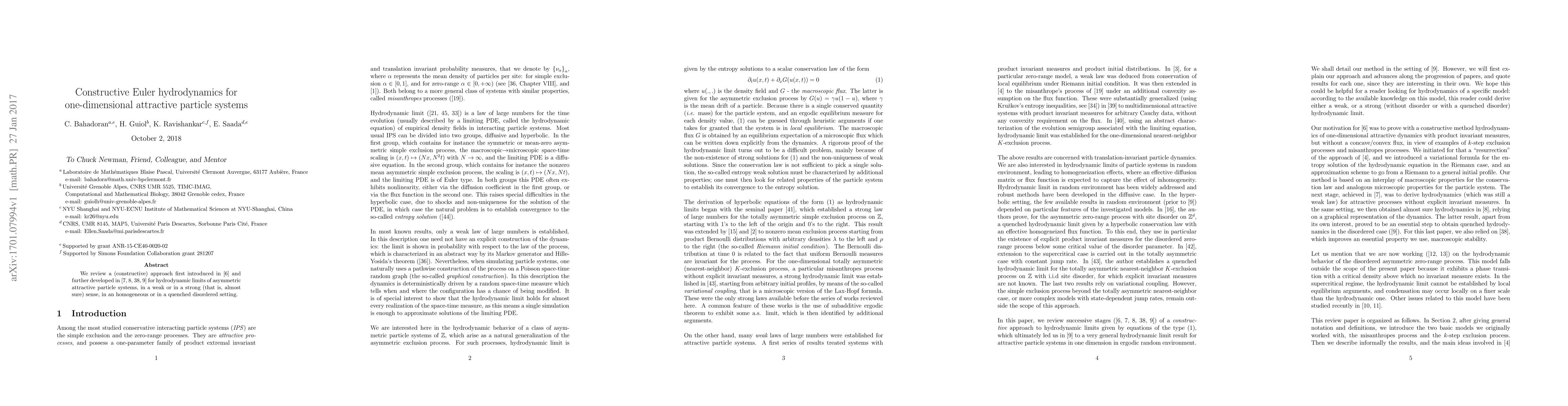 This paper reviews a constructive method for deriving hydrodynamic limits in asymmetric attractive particle systems, focusing on both weak and strong convergence scenarios, and considering both homogeneous and disordered environments. The approach builds on prior developments in the field.