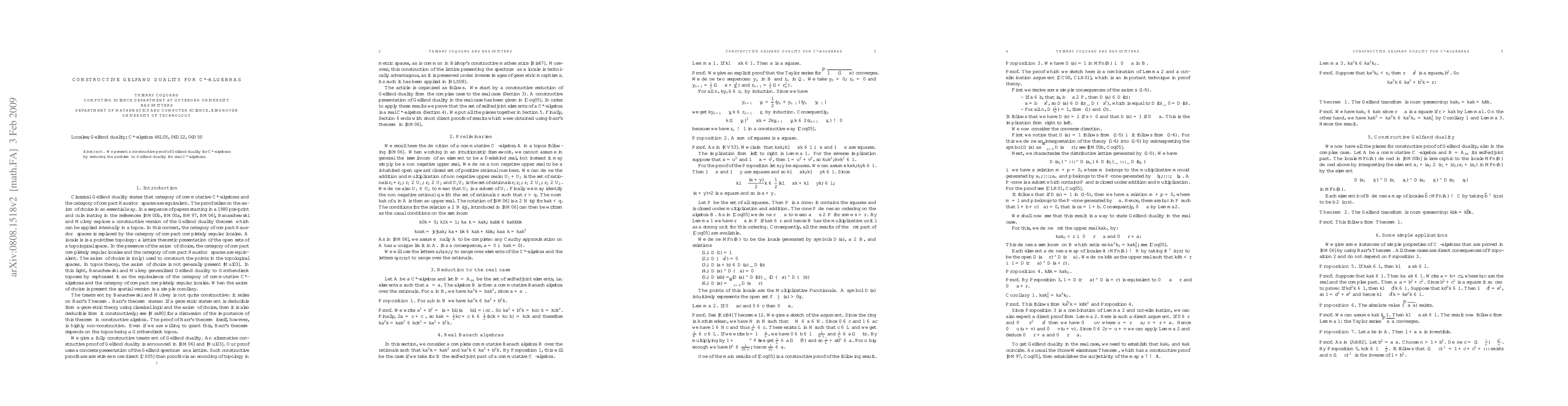 Summary: This paper provides a constructive proof of Gelfand duality for C*-algebras by leveraging the duality for real C*-algebras, thereby simplifying the complex problem into a more manageable form.