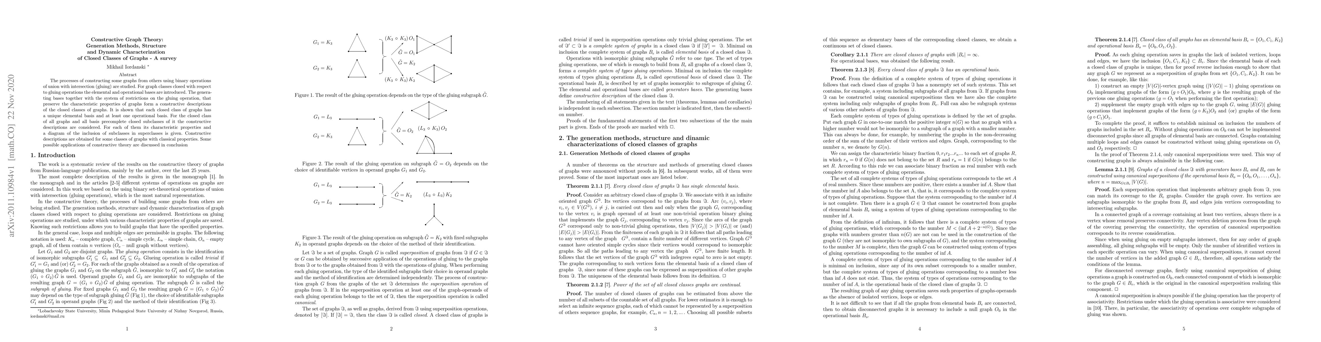 This paper surveys the generation methods and structural characteristics of closed classes of graphs using binary operations like union and intersection. It introduces elemental and operational bases for these classes, demonstrating that each closed class has a unique elemental basis and at least one operational basis, and discusses potential applications of constructive graph theory.