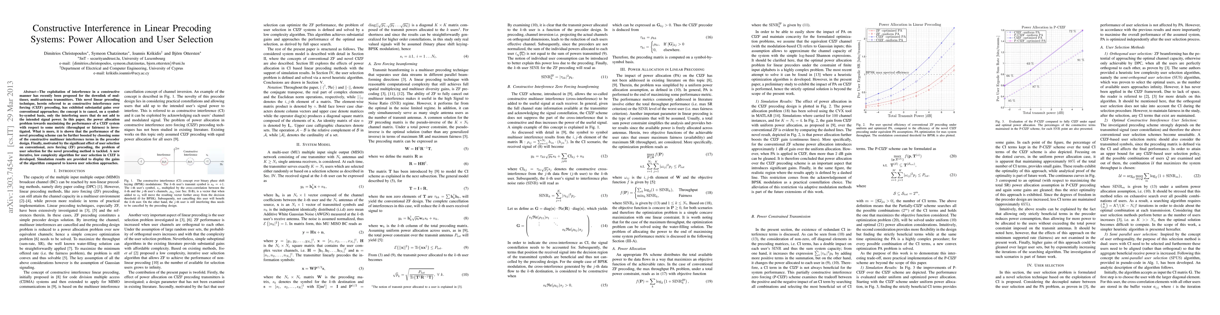 This paper explores a novel linear precoding technique called constructive interference zero forcing (CIZF) to maximize throughput or fairness in multiuser, multi-antenna systems, introducing an iterative user selection algorithm for improved performance.