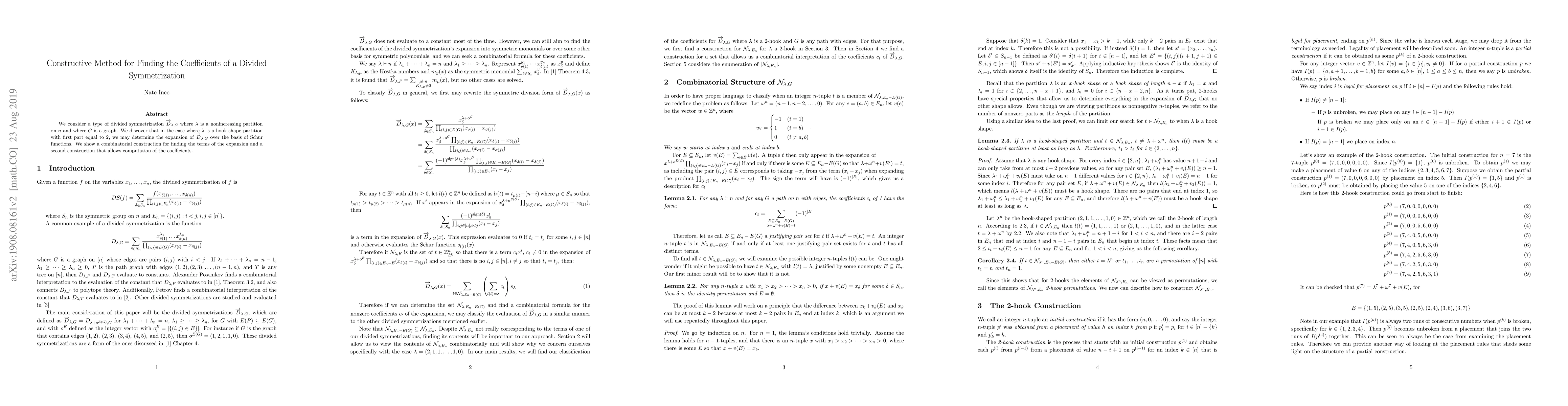 Researchers discovered a method to find the coefficients of a divided symmetrization expansion over Schur functions for specific partitions, enabling efficient computation and providing new insights into combinatorial structures.