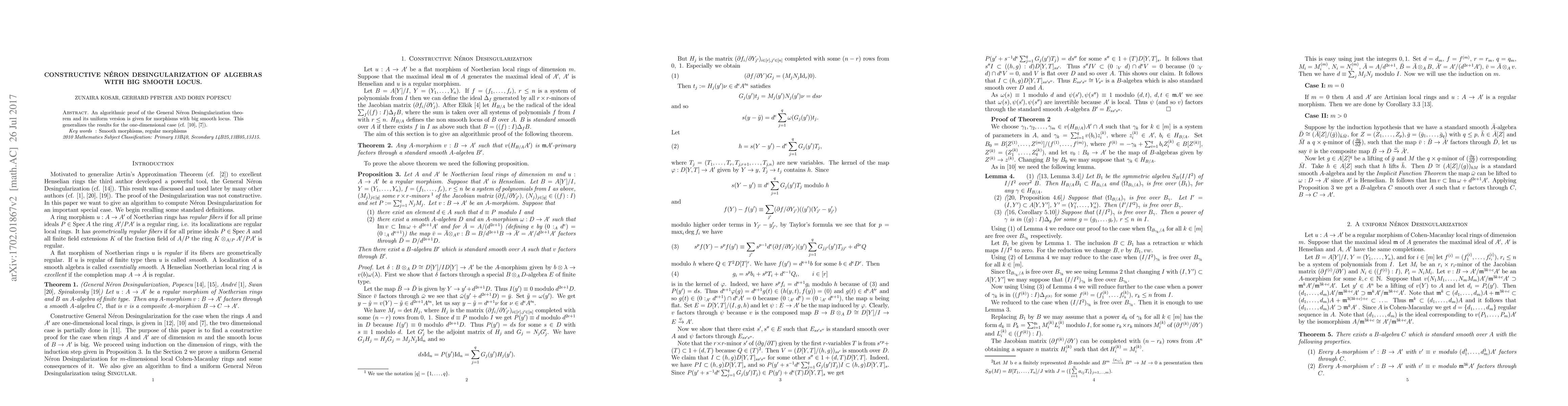 An algorithmic proof of the General N\'eron Desingularization theorem and its uniform version is given for morphisms with big smooth locus. This generalizes the results for the one-dimensional case.