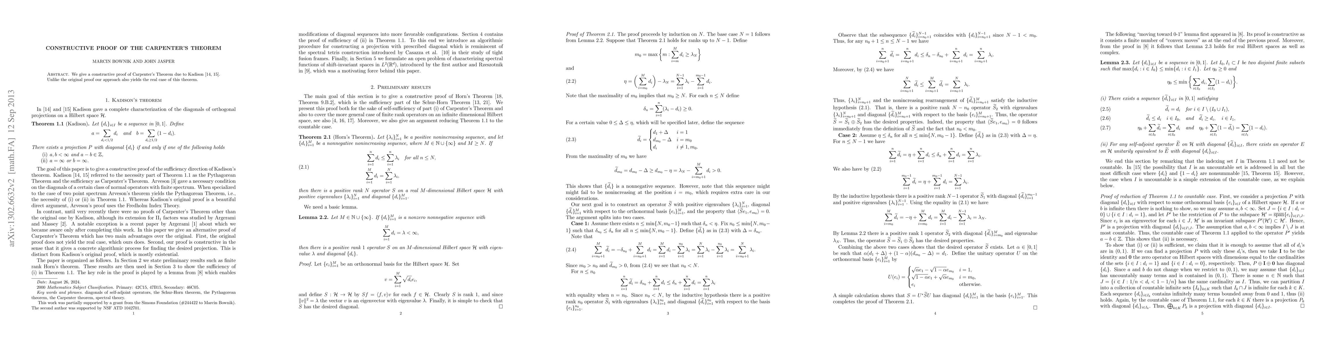 Summary: This paper presents a constructive proof for Kadison's Carpenter's Theorem, extending the proof to cover the real case, unlike the original proof which was limited to complex numbers.