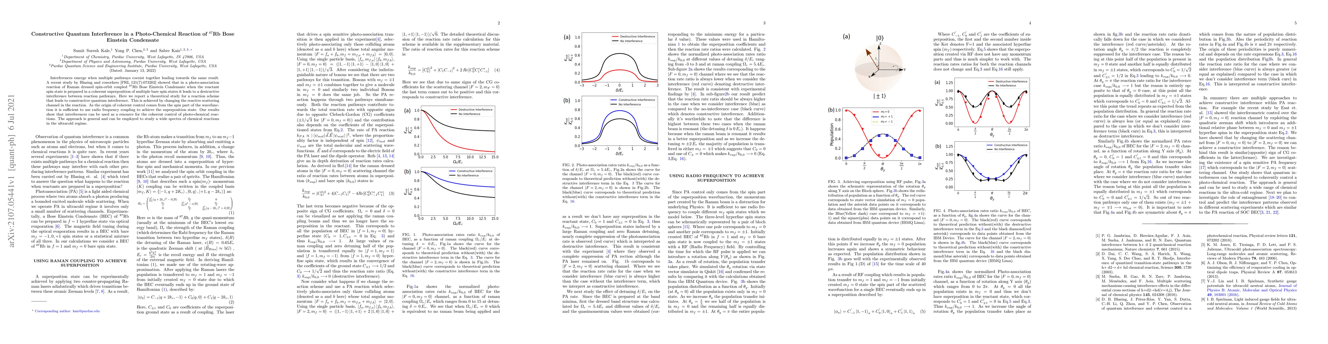 Interferences emerge when multiple pathways coexist together leading towards the same result. A Recent study by Blasing and coworkers [PRL 121(7):073202] showed that in a photo-association reaction of Raman dressed spin orbit coupled $^{87}$Rb Bose Einstein Condensate when the reactant spin state is prepared in a coherent superposition of multiple bare spin states it leads to a destructive interference between reaction pathways. Here we report a theoretical study for a reaction scheme which leads to constructive quantum interference. This is achieved by changing the reactive scattering channel in the reaction. As the origin of coherent control comes from the spin part of the wavefunction it is sufficient to use radio frequency coupling to achieve the superposition state. Our results show that interferences can be used as a resource for the coherent control of photo-chemical reactions. The approach is general and can be employed to study a wide spectra of chemical reactions in the ultracold regime.
