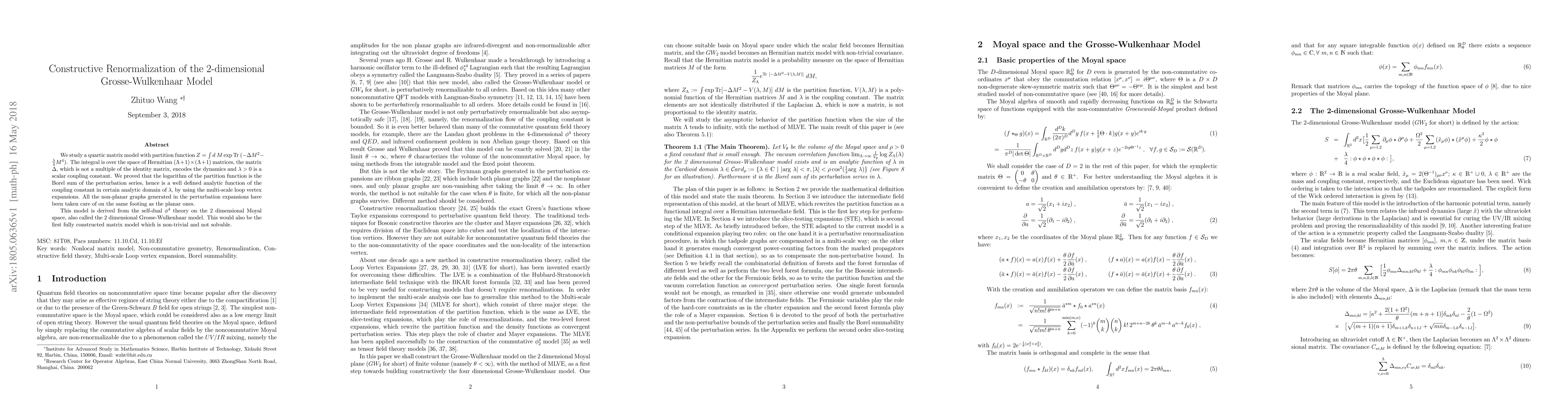 Researchers have successfully constructed a 2D matrix model using constructive renormalization, demonstrating that its partition function is an analytic function of the coupling constant in certain domains.