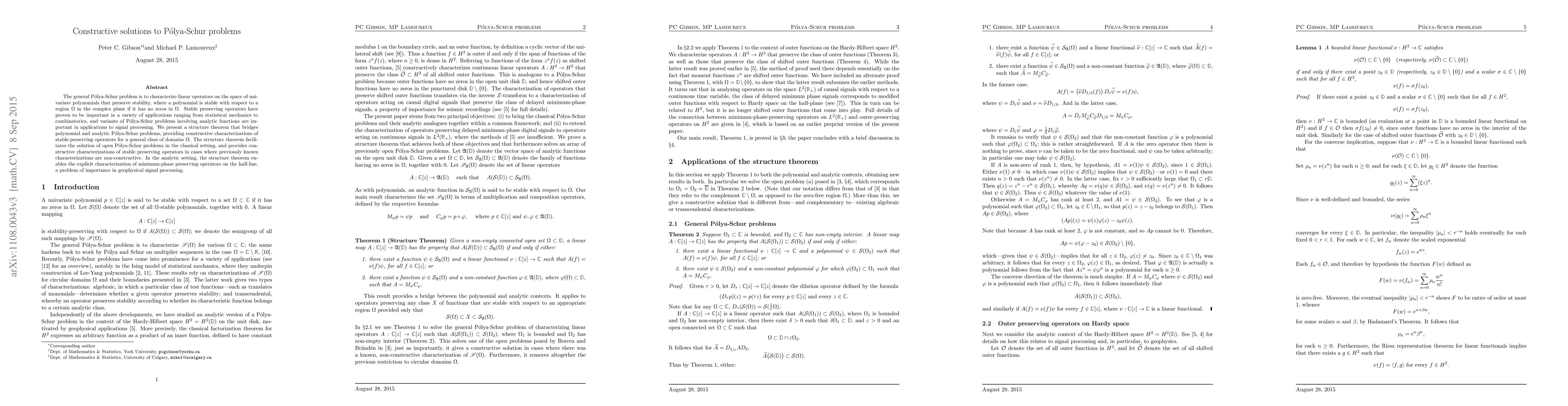 We present constructive solutions to the following P\'olya-Schur problems concerning linear operators on the space of univariate polynomials: Given subsets $\Omega_1$ and $\Omega_2$ of the complex plane, determine operators that map all polynomials having no zeros in $\Omega_1$ to polynomials having no zeros in $\Omega_2$, or to the zero polynomial. We describe an explicit class consisting of rank 1 operators and product-composition operators that solve the stated problems for arbitrary $\Omega_1$ and $\Omega_2$; and this class is shown to comprise all solutions when $\Omega_1$ is bounded and $\Omega_2$ has non-empty interior. The latter result encompasses a number of open problems and, moreover, gives explicit solutions in cases of circular domains $\Omega_1=\Omega_2$ where existing characterizations are non-constructive. The paper also treats problems stemming from digital signal processing that are analogous to P\'olya-Schur problems. Specifically, we describe all bounded linear operators on Hardy space that preserve the class of outer functions, as well as those that preserve shifted outer functions.