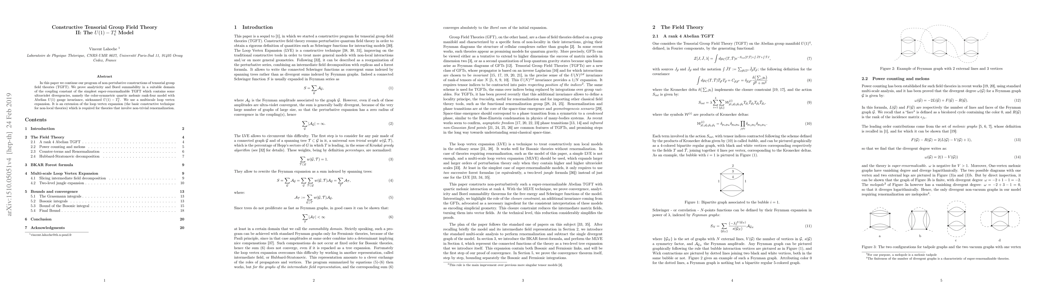 This paper extends the non-perturbative construction of tensorial group field theories (TGFT) by proving analyticity and Borel summability for the $U(1)-T^4_4$ model, a super-renormalizable theory with ultraviolet divergencies. The authors employ a multiscale loop vertex expansion to handle the non-trivial renormalization required for this model.