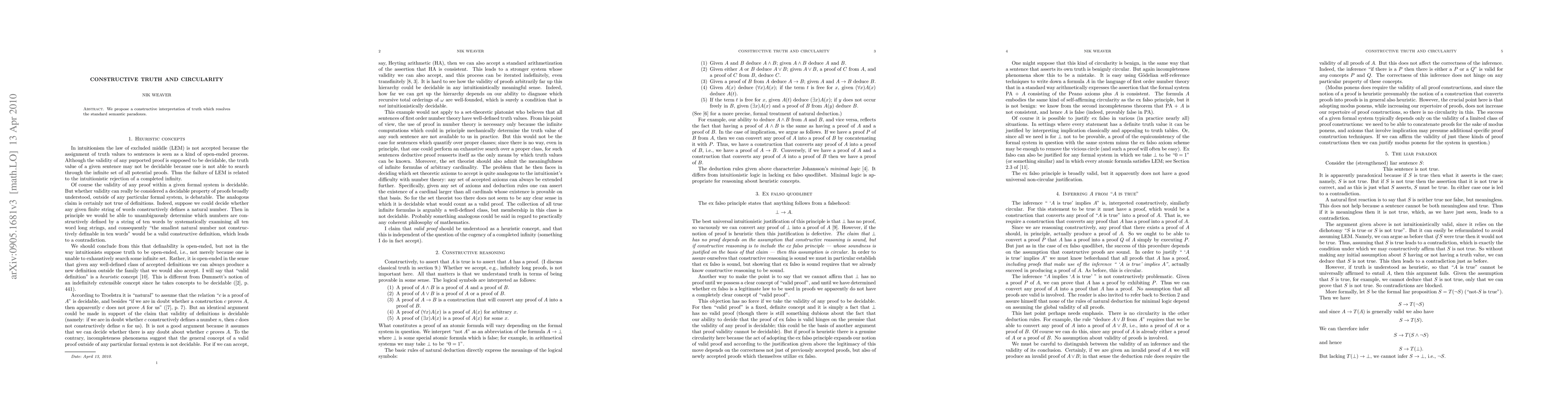 Summary: This paper introduces a constructive interpretation of truth that effectively resolves traditional semantic paradoxes, offering a novel approach to understanding truth in a non-circular manner.