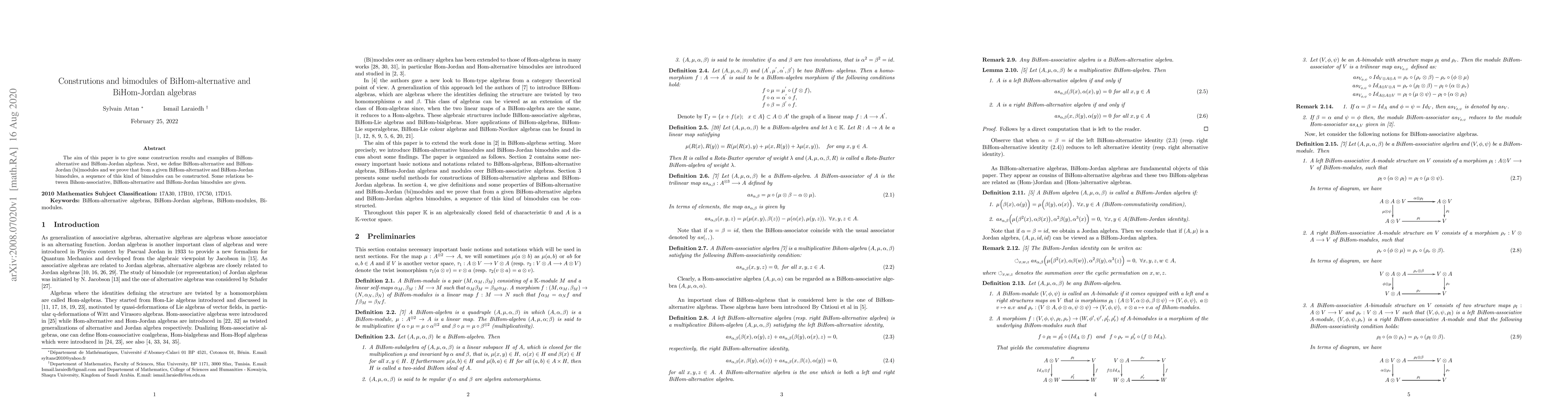 This paper presents constructions and examples of BiHom-alternative and BiHom-Jordan algebras, defines their bimodules, and proves that sequences of these bimodules can be constructed, along with relations between different bimodule types.