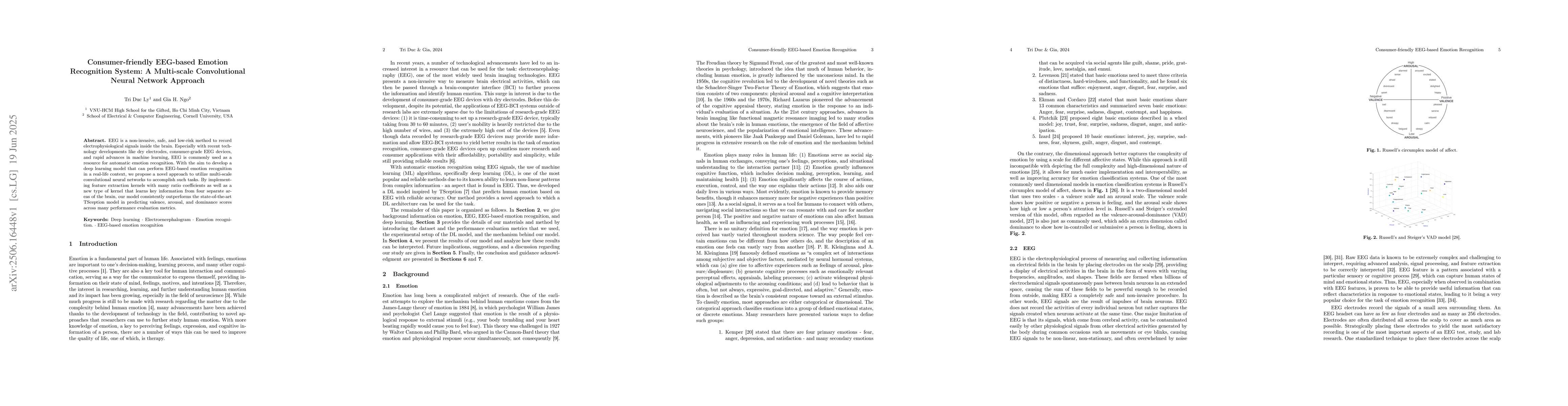 This research introduces a novel deep learning model using multi-scale convolutional neural networks for EEG-based emotion recognition. The model outperforms existing methods, accurately predicting valence, arousal, and dominance scores, paving the way for consumer-friendly, real-life emotion monitoring.