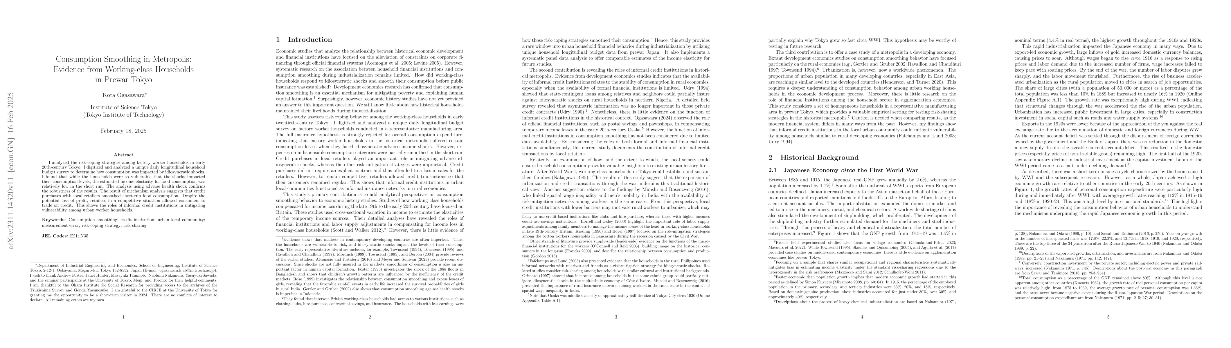 This paper examines risk-coping behaviors among working-class households in prewar Tokyo, finding that idiosyncratic shocks significantly impact consumption, though food consumption remains relatively stable due to credit purchases. The study also identifies systematic bias from misaligned payday data in consumption smoothing analyses.