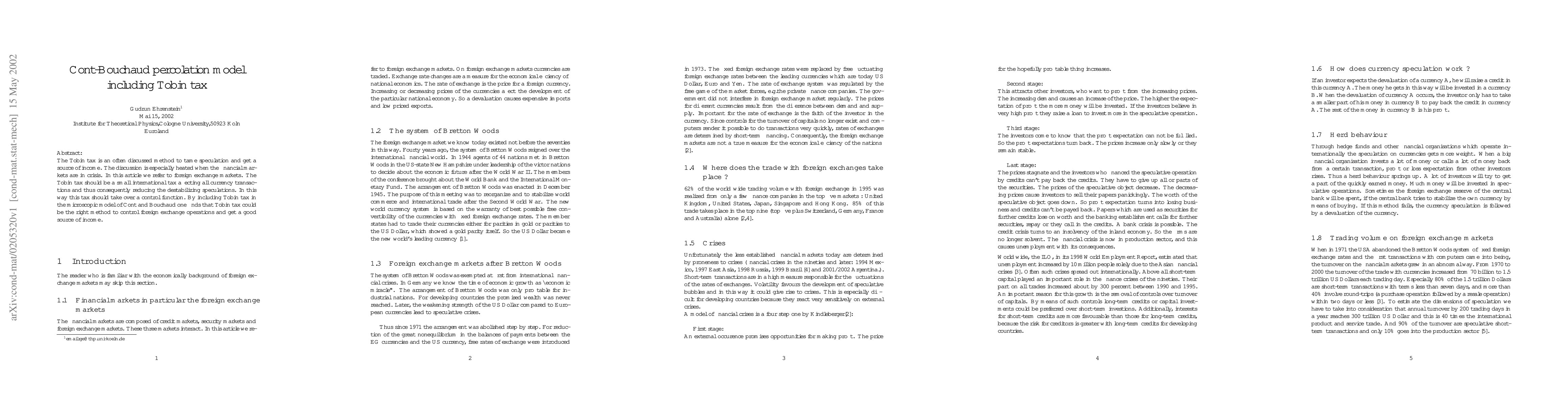 The research incorporates Tobin tax into the Cont and Bouchaud microscopic model to study its impact on controlling foreign exchange operations.