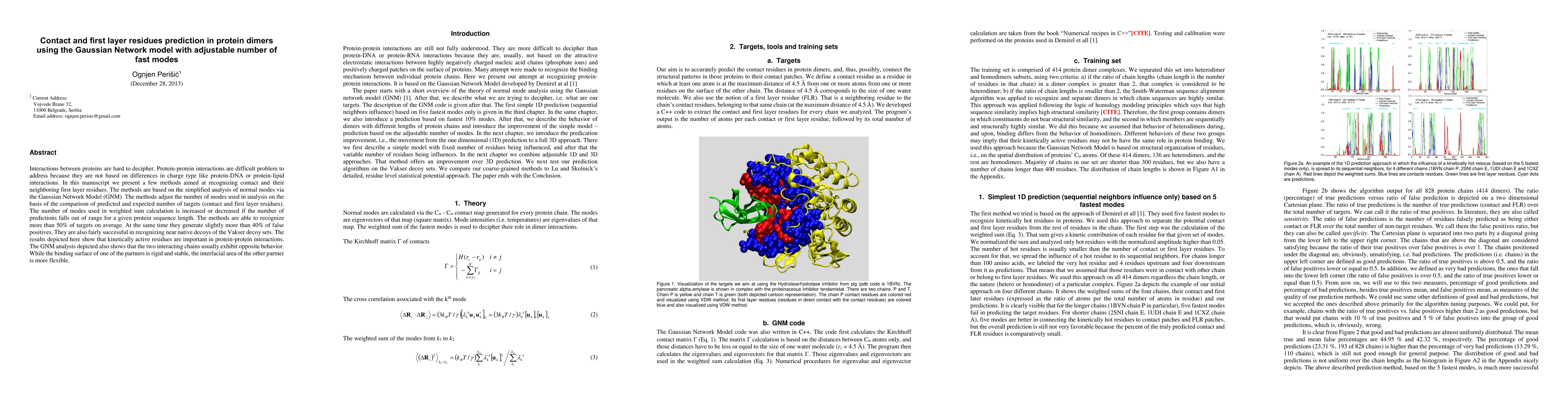 Interactions between proteins are hard to decipher. Protein-protein interactions are difficult problem to address because they are not based on differences in charge type like protein-DNA or protein-lipid interactions. In this manuscript we present a few methods aimed at recognizing contact and their neighboring first layer residues. The methods are based on the simplified analysis of normal modes via the Gaussian Network Model (GNM). The methods adjust the number of modes used in analysis on the basis of the comparison of predicted and expected number of targets (contact and first layer residues). The number of modes used in weighted sum calculation is increased or decreased if the number of predictions falls out of range for a given protein sequence length. The methods are able to recognize more than 50% of targets on average. At the same time they generate slightly more than 40% of false positives. They are also fairly successful in recognizing near native decoys of the Vakser decoy sets. The results depicted here show that kinetically active residues are important in protein-protein interactions. The GNM analysis depicted also shows that the two interacting chains usually exhibit opposite behavior. While the binding surface of one of the partners is rigid and stable, the interfacial area of the other partner is more flexible.