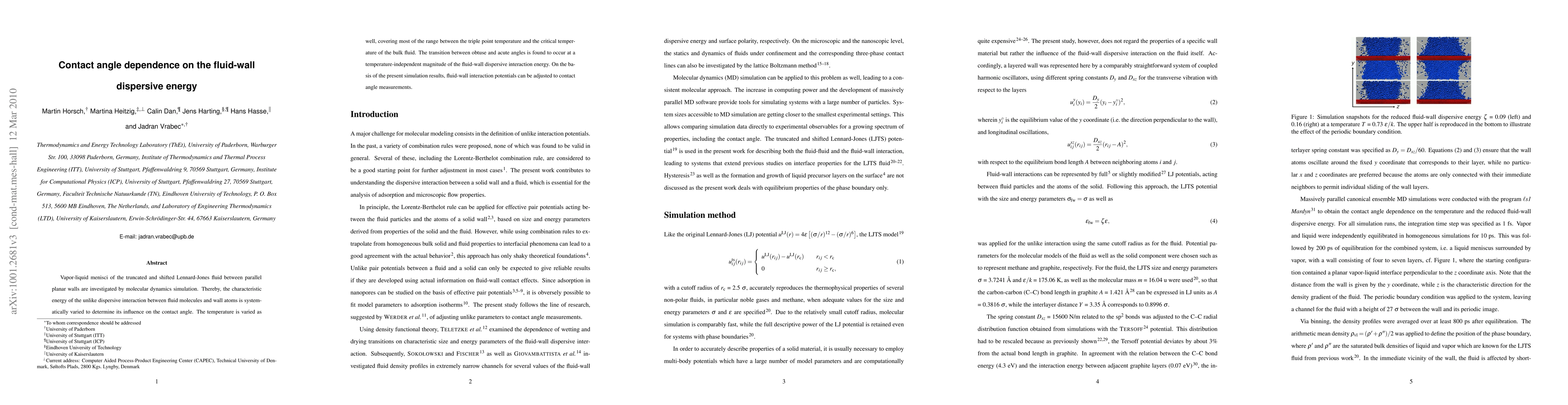 Vapor-liquid menisci of the truncated and shifted Lennard-Jones fluid between parallel planar walls are investigated by molecular dynamics simulation. Thereby, the characteristic energy of the unlike dispersive interaction between fluid molecules and wall atoms is systematically varied to determine its influence on the contact angle. The temperature is varied as well, covering most of the range between the triple point temperature and the critical temperature of the bulk fluid. The transition between obtuse and acute angles is found to occur at a temperature-independent magnitude of the fluid-wall dispersive interaction energy. On the basis of the present simulation results, fluid-wall interaction potentials can be adjusted to contact angle measurements.